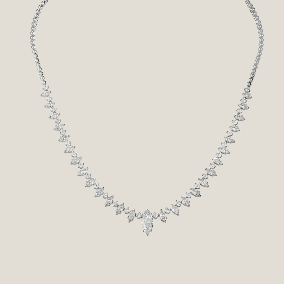 SKU: DN125 Product Description: Multi shape white diamond necklace With HRD certificate Specification: 5.69 carats...