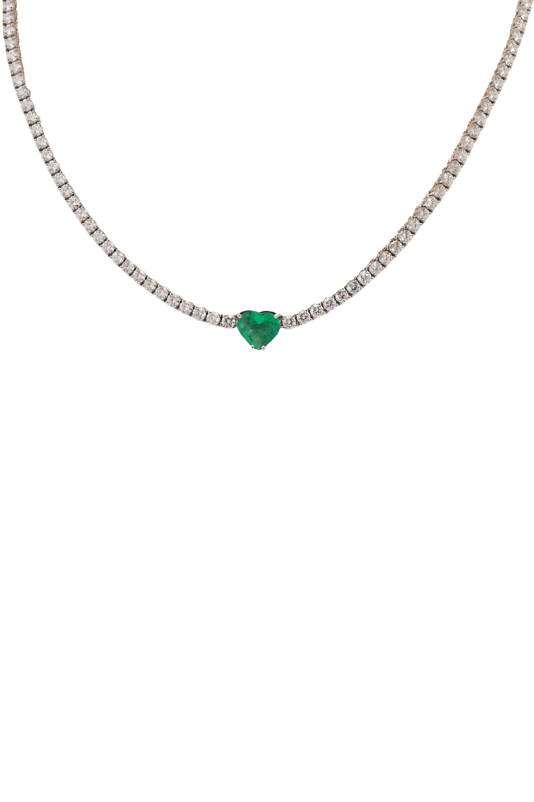 SKU: DN136 Product Description: white round diamond with heart shaped emerald necklace Specification: 7.91 carats,98...